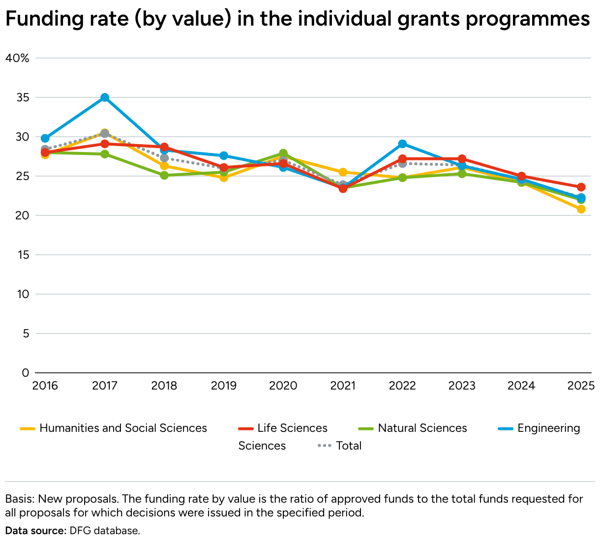 Here you will find information on developments in the average processing periods for DFG proposals and funding success rate in the individual grants programme by scientific discipline.
